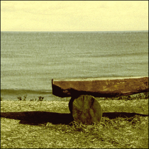 ゆるやかに流れる時空間を楽しむのに、おあつらえ向きの木製ベンチ。